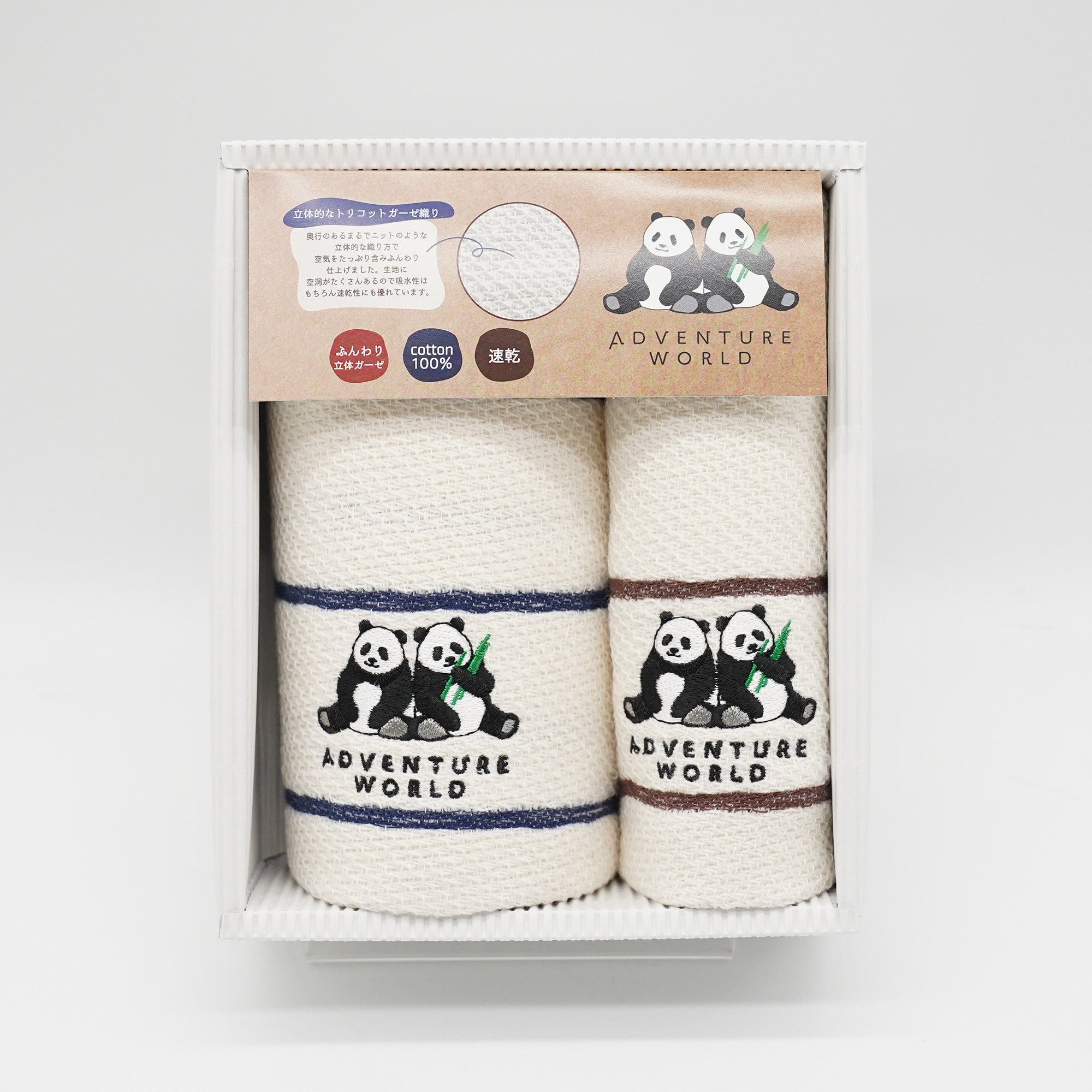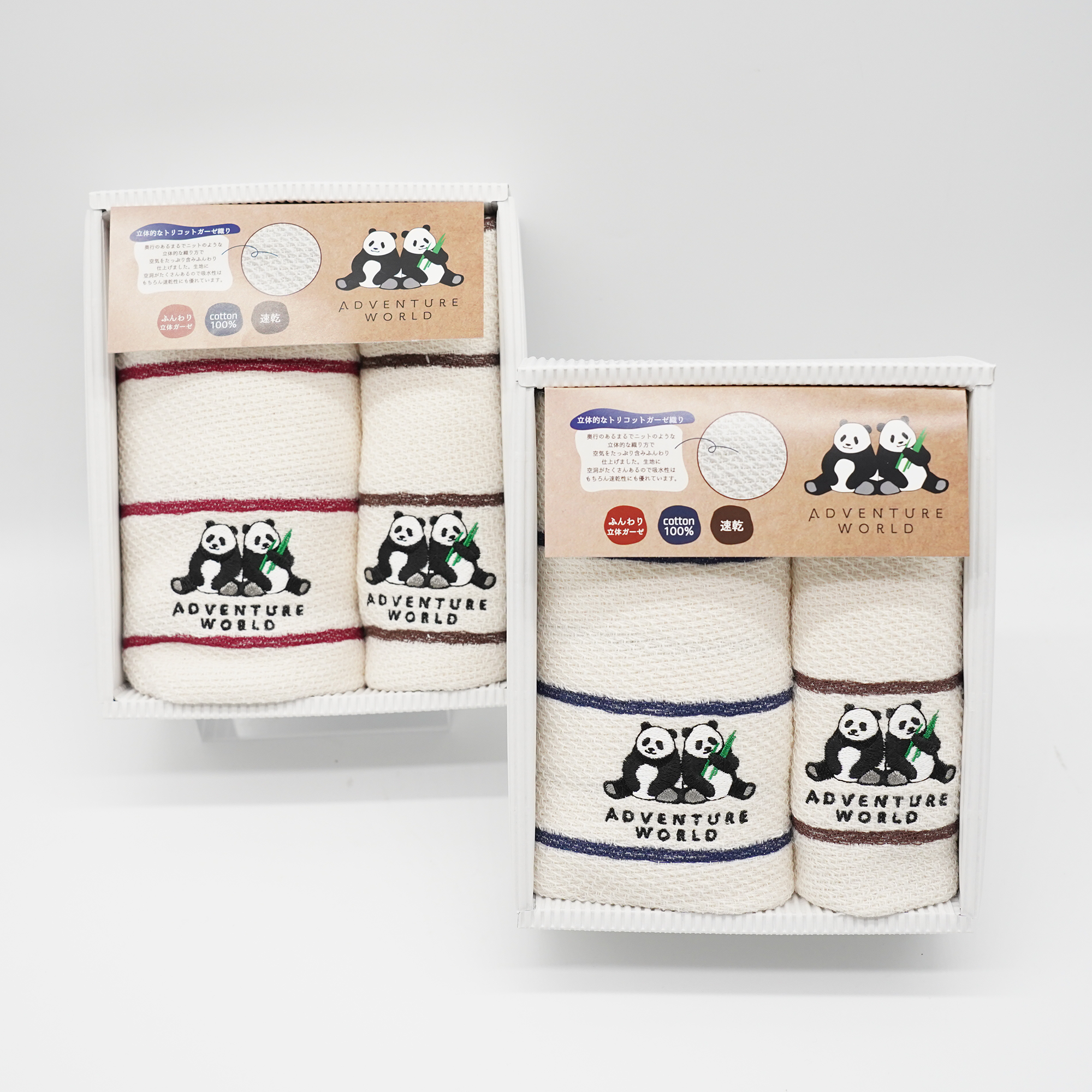 フェイスタオル(ネイビー)とハンドタオル(ブラウン)がセットになっています!