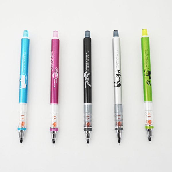 クルっと回って芯がトガり続ける「クルトガエンジン」。線幅:0.5㎜ ・芯を保持したギアが筆圧で上下しながら回ります ・芯の回転は、ギアに印刷されたマークの回転で確認できます