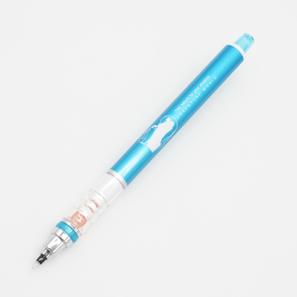 クルっと回って芯がトガり続ける「クルトガエンジン」。線幅:0.5㎜ ・芯を保持したギアが筆圧で上下しながら回ります ・芯の回転は、ギアに印刷されたマークの回転で確認できます