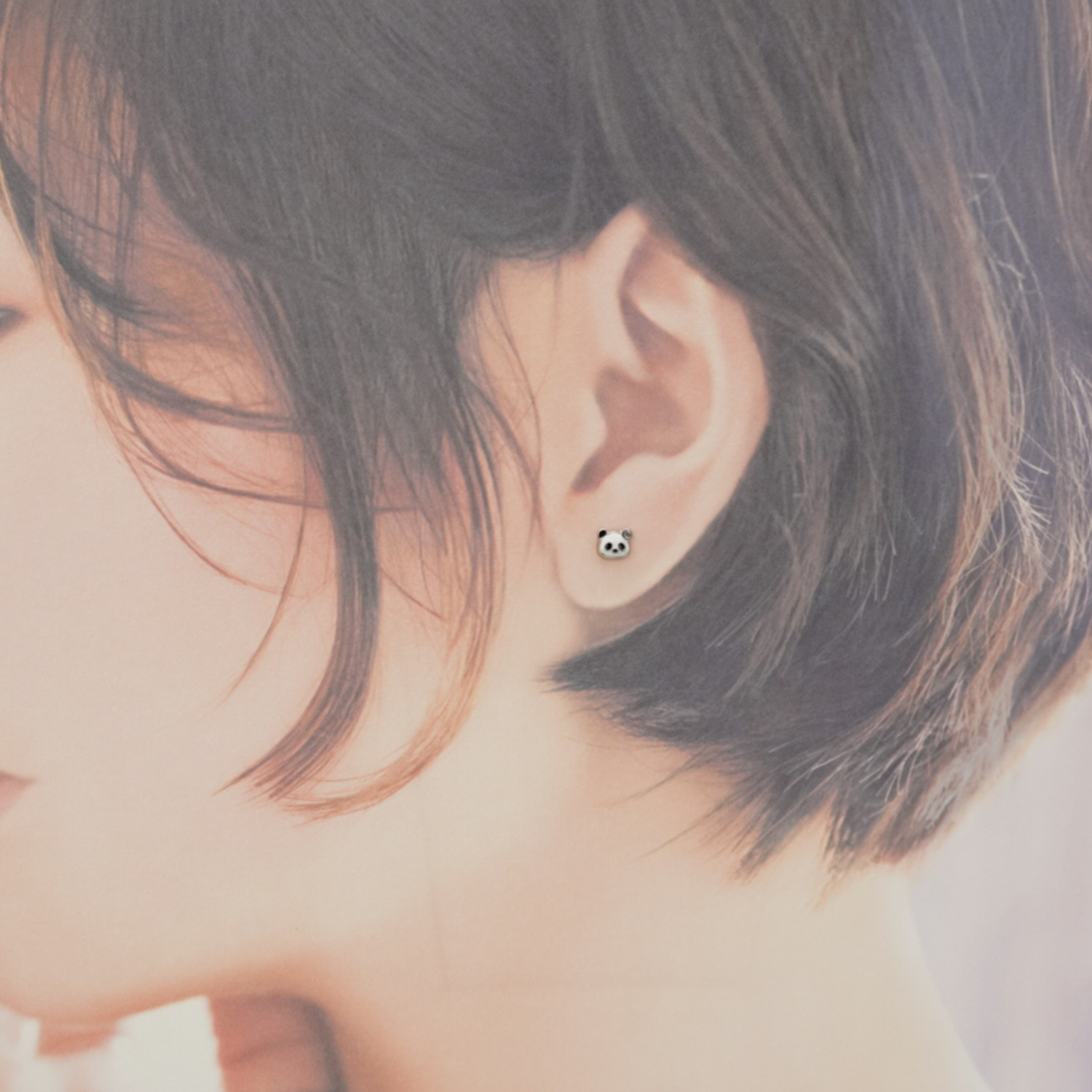 ストーン付き!耳元を華やかにしてくれるパンダをモチーフにしたピアス!パークコーデに取り入れてみてはいかがでしょうか?