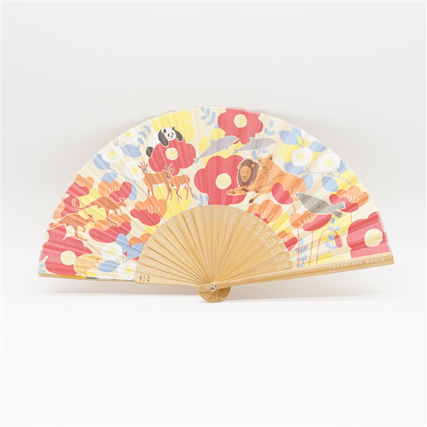 花柄と動物のコントラストが可愛い、カラフルなデザインの扇子です!