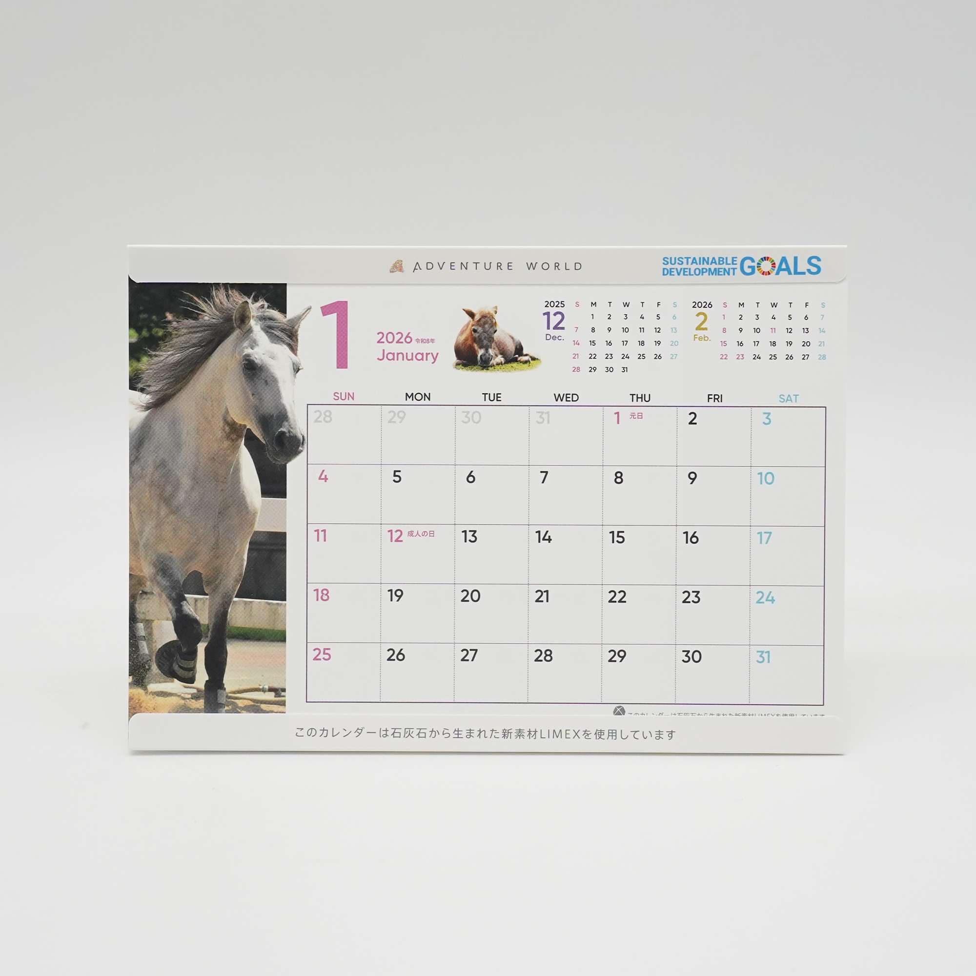 2025年に誕生した動物の赤ちゃんをはじめアドベンチャーワールドで暮らす動物たちの写真を使用した卓上カレンダー!