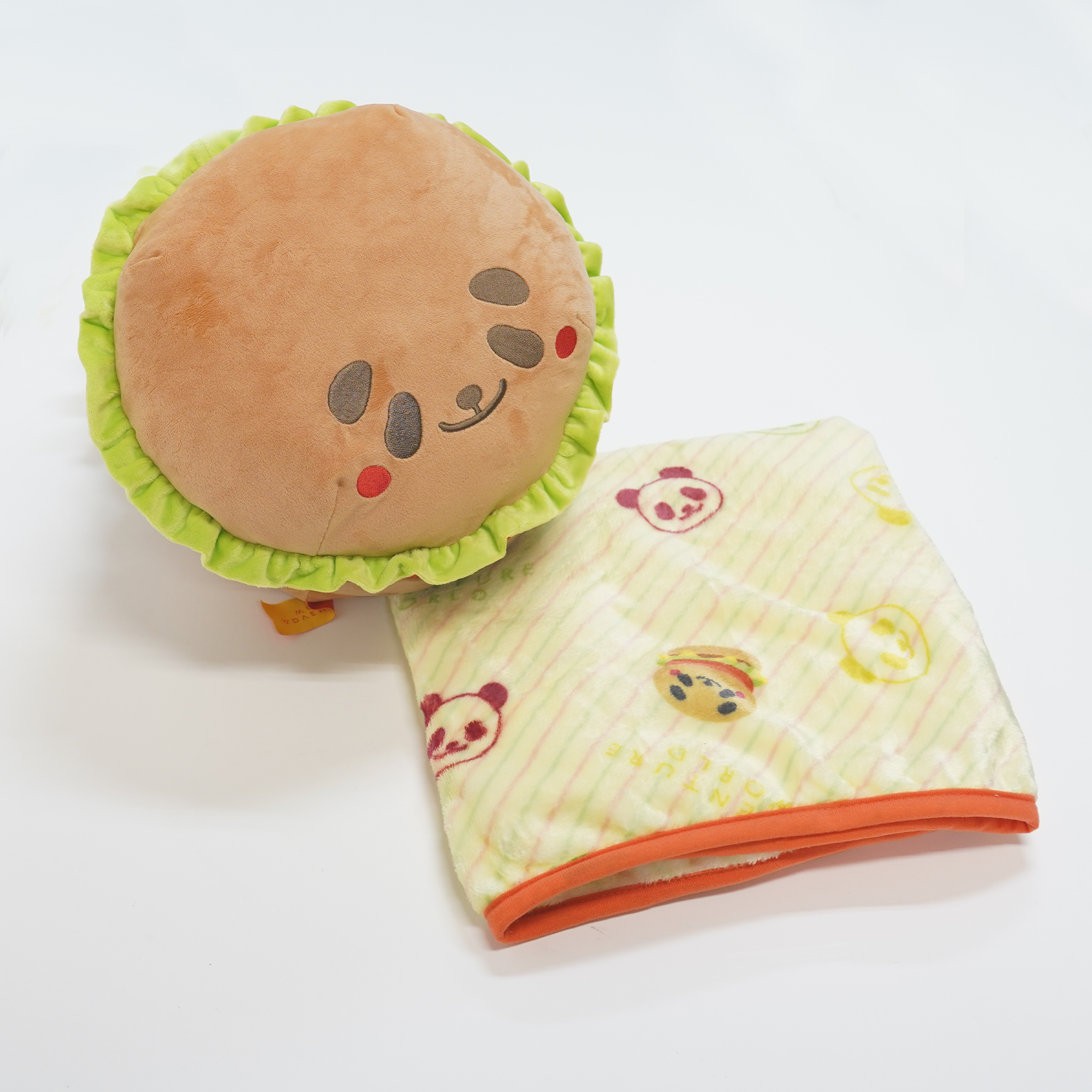 園内にある「パン工房」で販売している大人気商品「パンダバーガー」をモチーフにした多機能クッション!