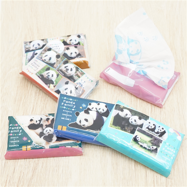 それぞれの母親、梅梅(メイメイ)と良浜(らうひん)との一場面も☆ パンダイラストがプリントされているティッシュペーパーは使うのがもったいないくらい?!