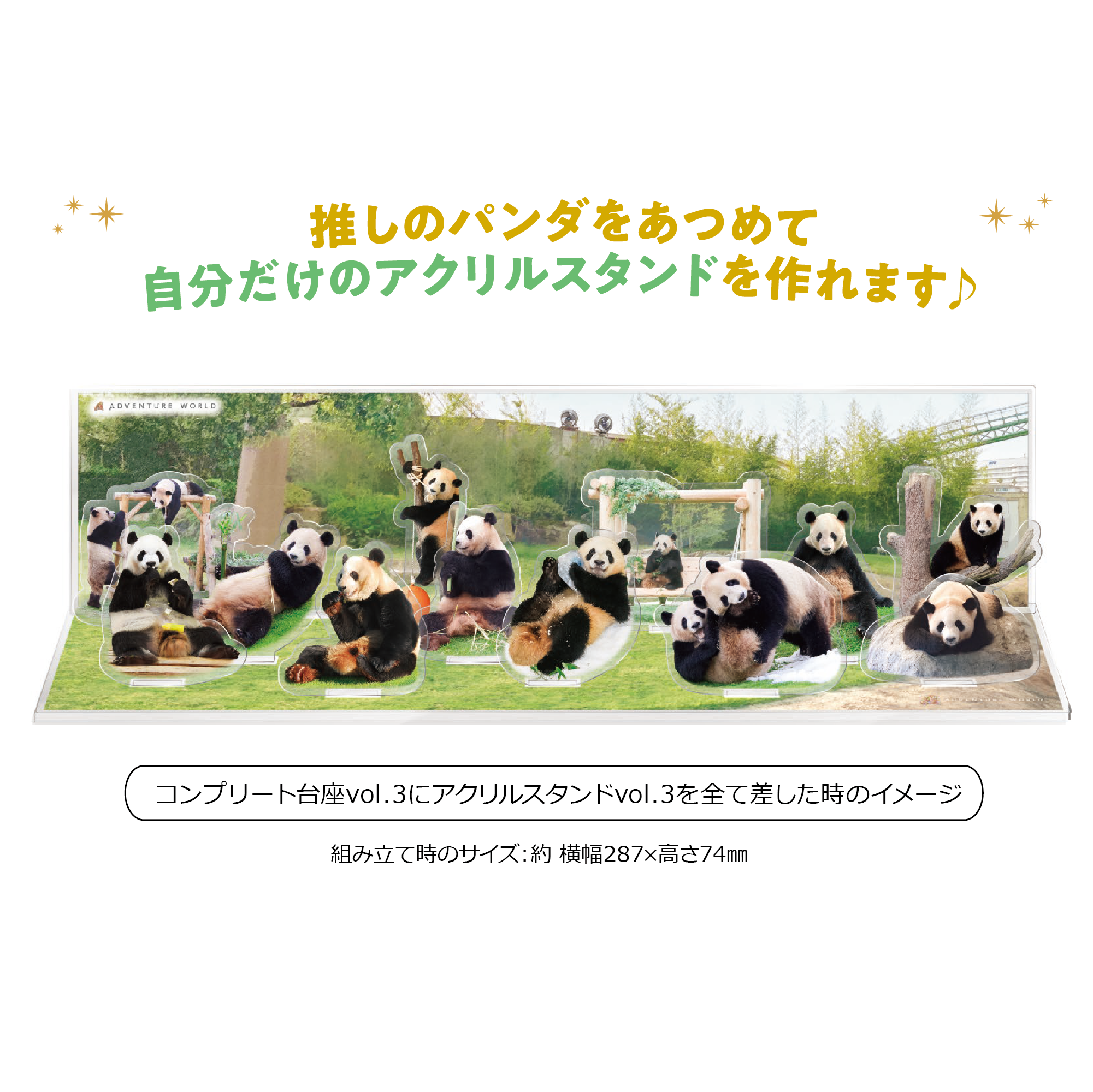 パークで暮らしていたパンダたちの道のり『JOURNEY』シリーズアクリルスタンドを飾ることが出来る台座!