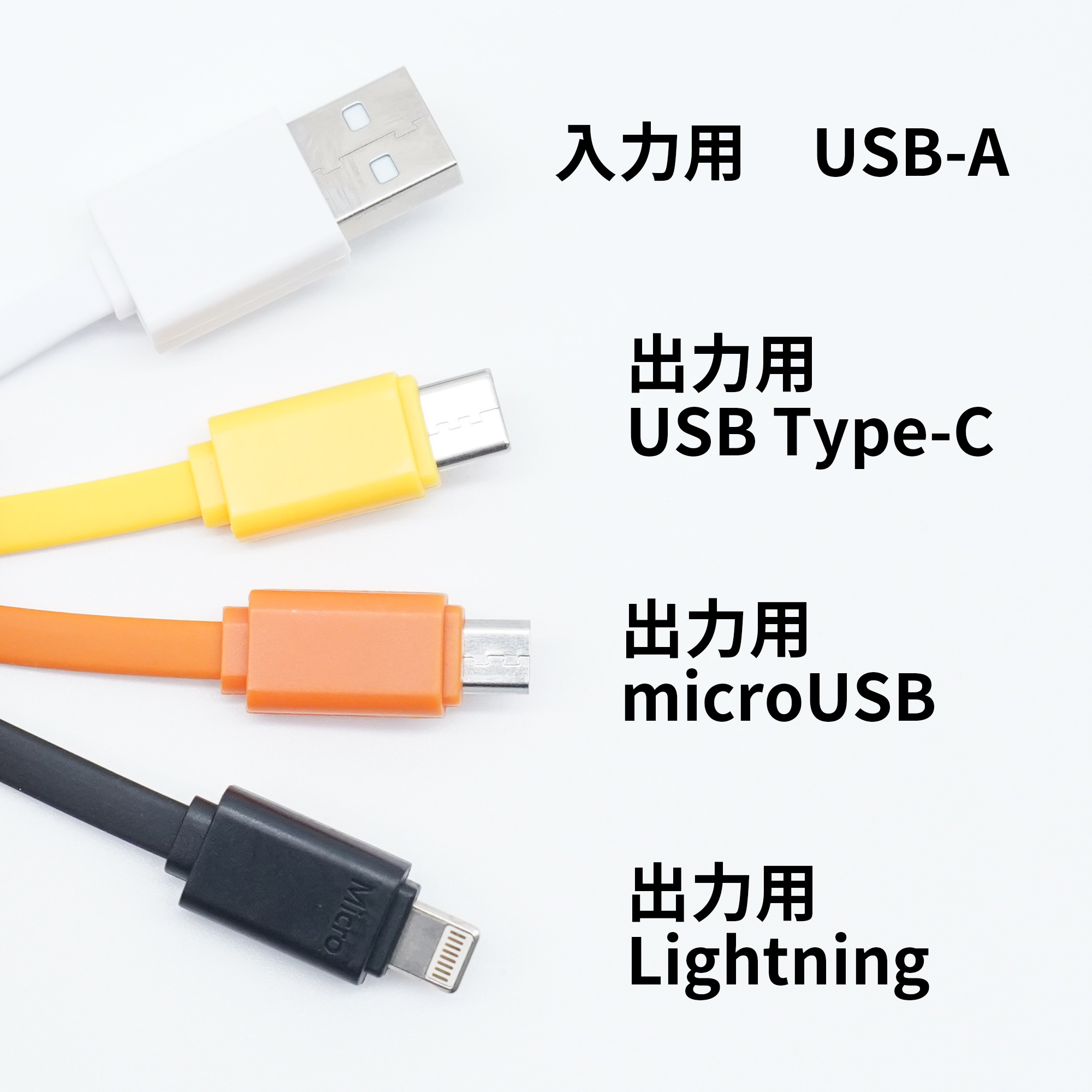 使用上の注意 ●複数危機の同時接続により充電できない場合は1台のみで充電を行ってください。 ●PD(Power Delivery)は非対応です。 ●1.5A以下のアダプター、モバイルバッテリーや車では過充電防止機能や出力端子のアンペア不足により充電できない場合があります。 ●充電専用の為通信対応不可です。● ●古いUSBアダプターでの充電は過充電を起こしケーブルが発熱し、場合によっては発火する恐れがあります。必ず日本国内の認証を受けた正規流通のUSBアダプターや過充電防止機能付きをご使用ください。 ●車の電源から使用する場合はエンジンをかけてから接続してください。ご使用後はエンジンを切る前に抜いてください。 ●防水仕様ではございません。またキーホルダーとして使用する場合、充電機器を付けたままのご使用はおやめください。コネクターから危機が外れ落下し破損する場合がございます。 ●接続する機器本体の破損や損傷等については一切の責任を負いかねますので、予めご了承ください。