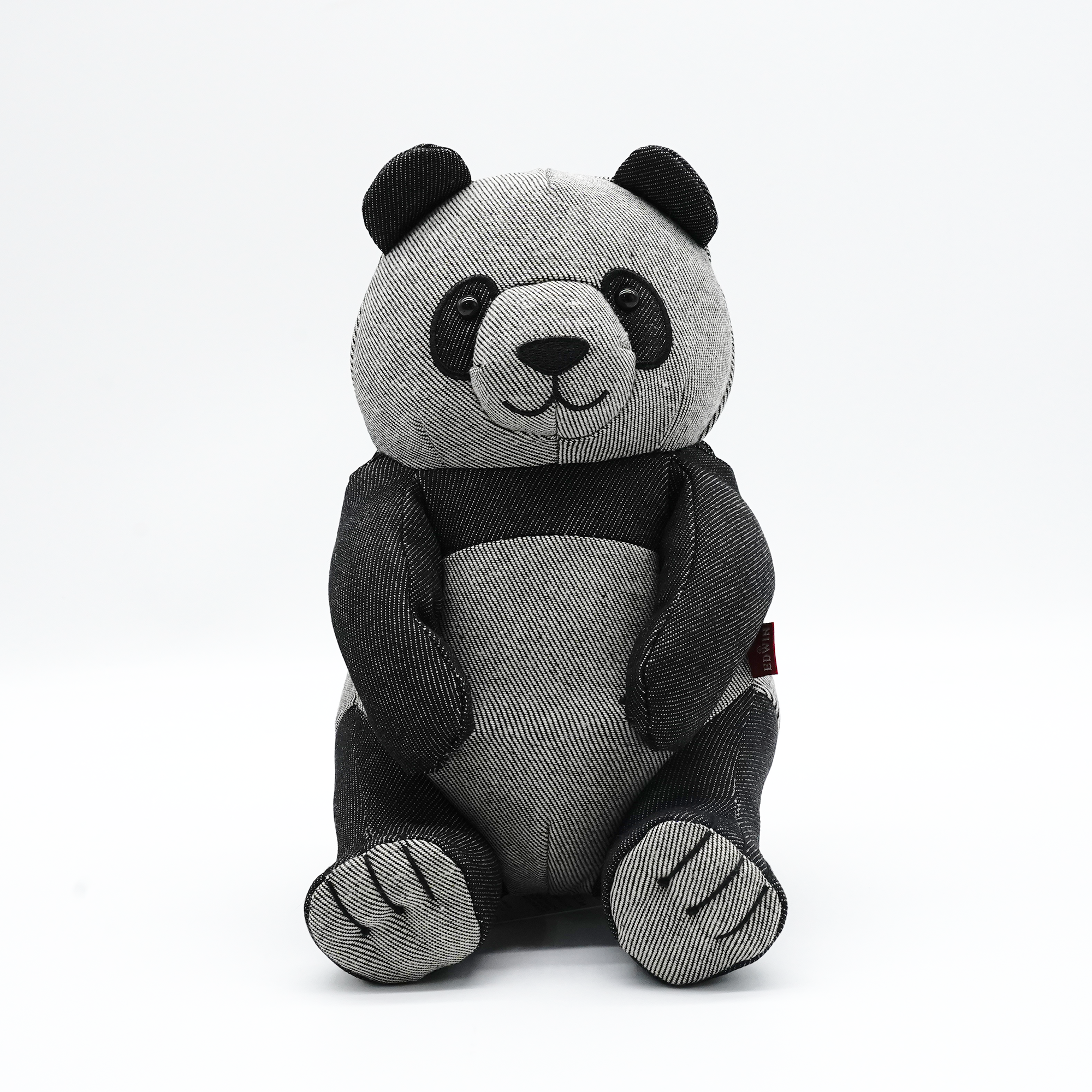 デニム素材で作られており、日常生活の中やインテリアにもなじむシックなぬいぐるみです。