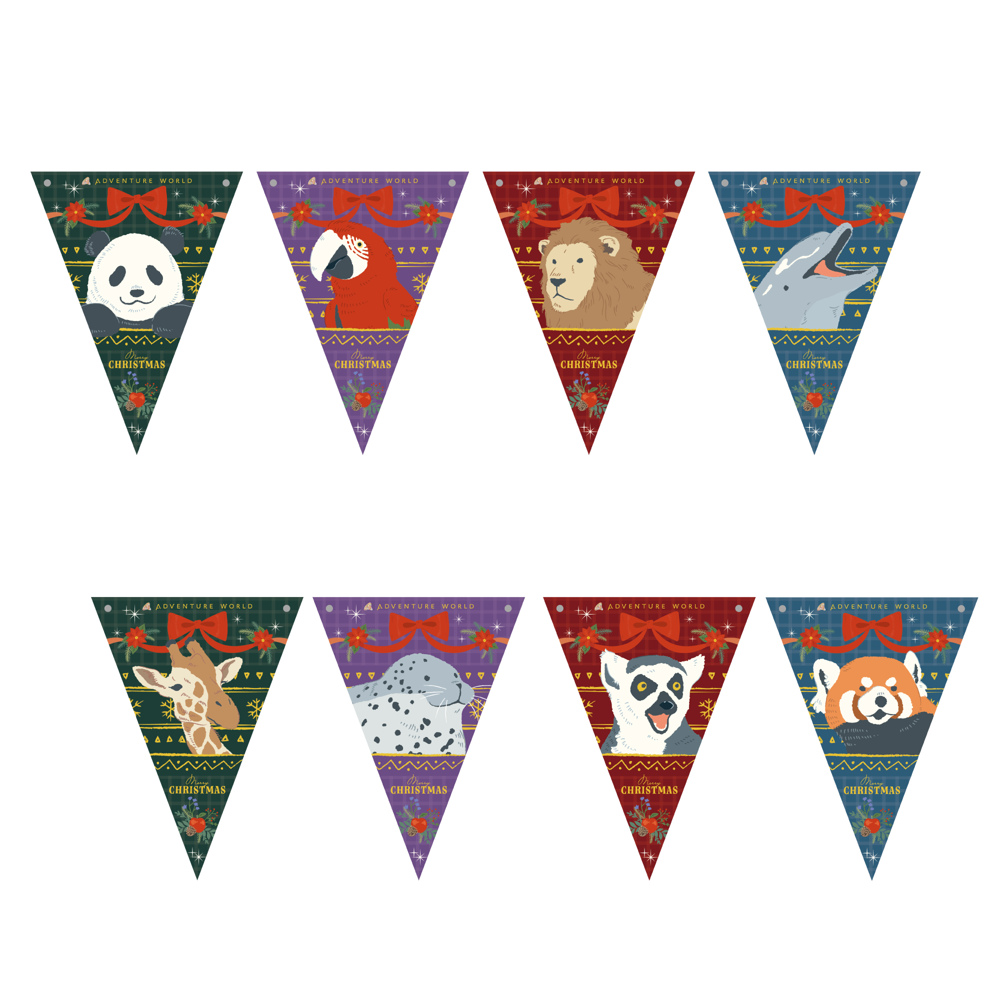 アドベンチャーワールドに暮らす仲間たちのイラストを使用したオリジナルデザインのガーランドです。