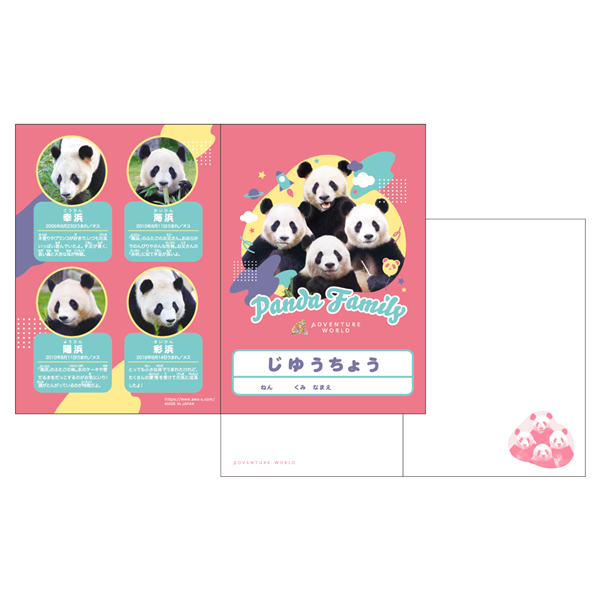 ポップな表紙と裏表紙にはパンダそれぞれの特徴が書かれており、中は無地の用紙にパンダたちのワンポイントデザイン☆
